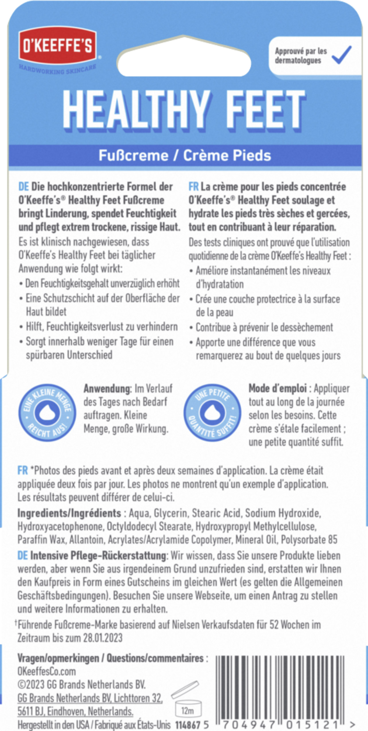 Fugt dine fødder med en unik formel, der indeholder fugtgivende ingredienser, der hjælper med at regenerere tør, revnet hud. O'Keeffe's Healthy Feet Foot Cream er skånsom nok til en daglig fugtighedscreme, men alligevel stærk nok til at give lindring til ekstremt tørre, revnede fødder. Ikke kun hjælper det med at reparere tør, ru hud ved at øge og fastlåse fugt, det giver også langvarig hydrering for at holde fødderne til at se og føles fantastiske på lang sigt.