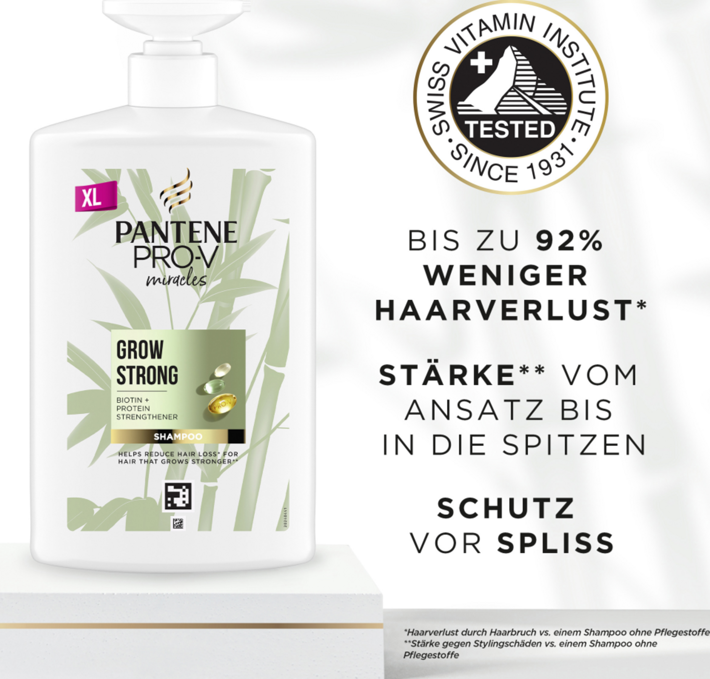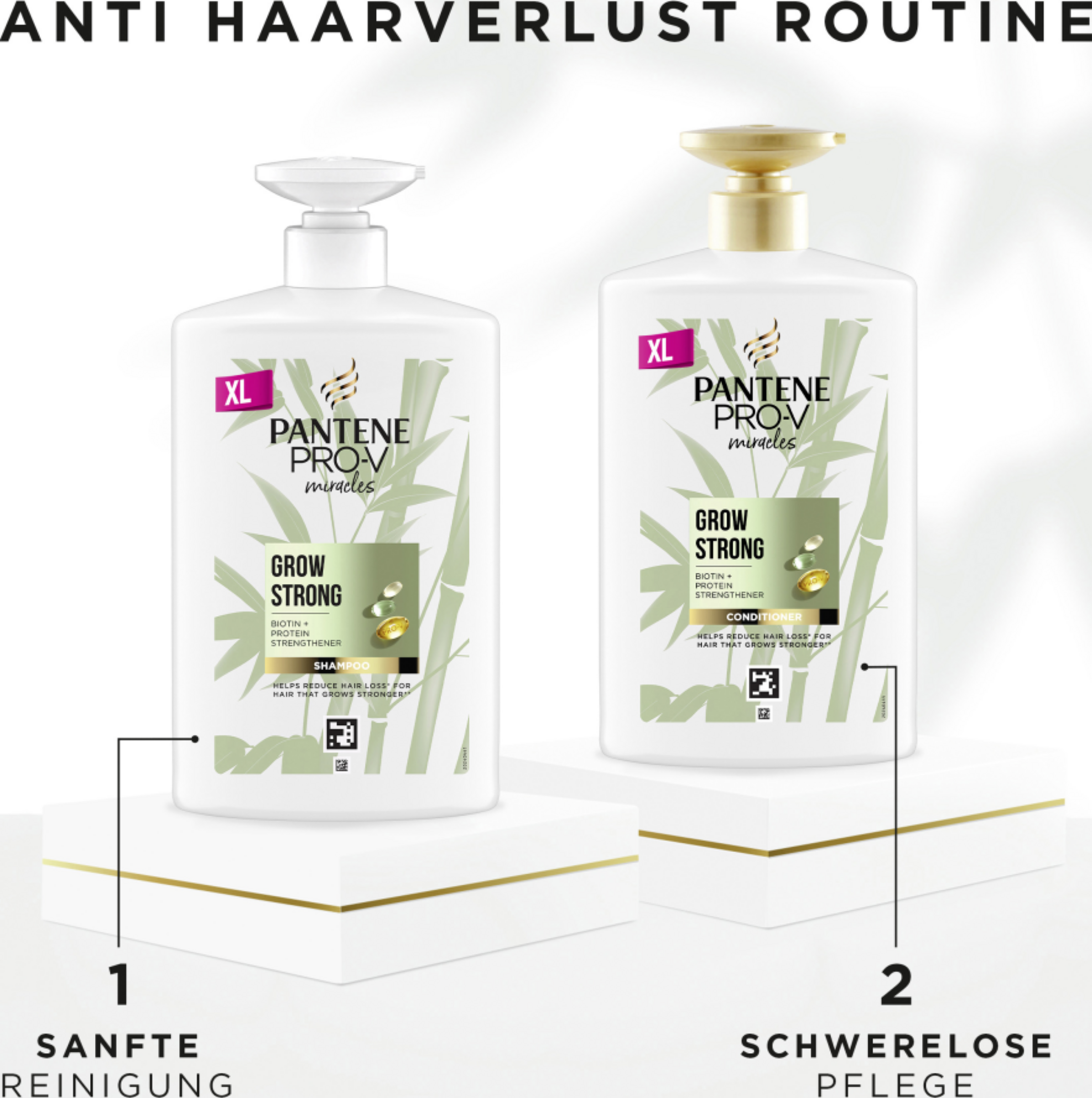 Pantene Pro-V Miracles Grow Strong Shampoo er designet til at reducere hårtab på grund af hårbrud for stærkt hår fra rod til spids (styrke mod stylingskader i forhold til en shampoo uden plejestoffer). Formlen er beriget med skræddersyede næringsstoffer og kombinerer biotin, styrkende protein og aktive Pro-V-blandinger.