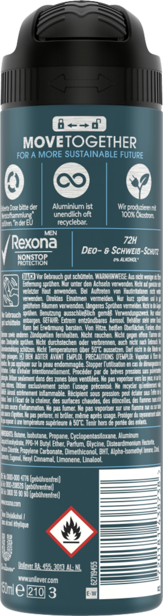 Rexona Men Nonstop Protection Deodorant Spray Thermo Fresh beskytter mod sved og lugt i op til 72 timer. Takket være den effektive beskyttelse fra antiperspiranten behøver du ikke at bekymre dig om fugt og lugt under armene. Deoen giver også en maskulin, frisk duft. Langvarig friskhed og et selvsikkert udseende hver dag med Rexona deodoranter.