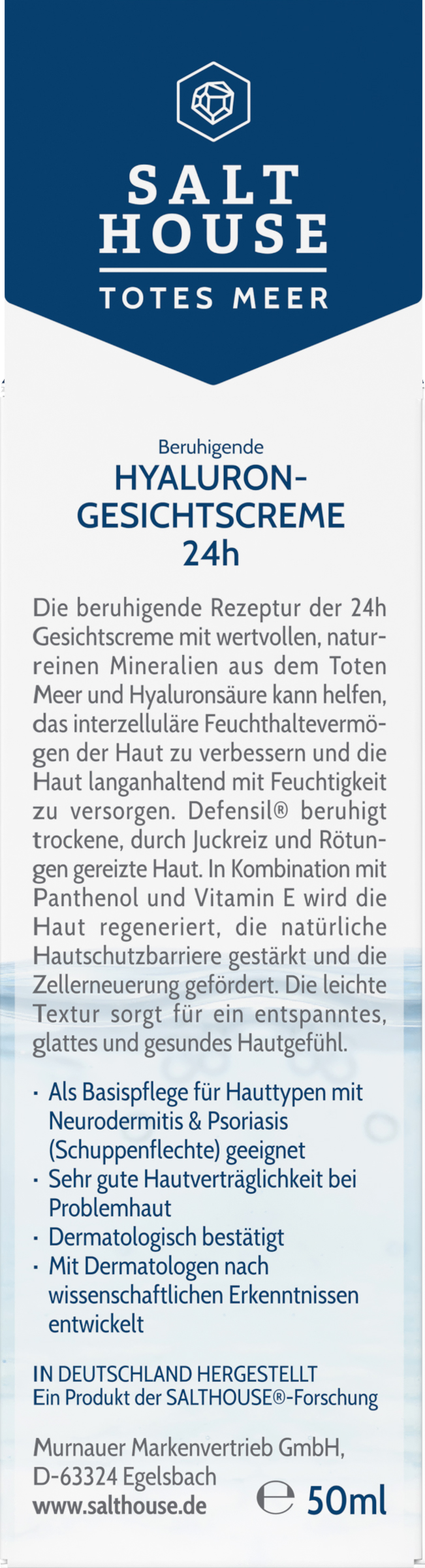 Den beroligende Formel i 24-timers Ansigtscreme med værdifulde, naturlige Mineraler fra Det Døde Hav og Hyaluronsyre kan være med til at forbedre hudens intercellulære fugtretentionsevne og give huden langvarig fugt. Defensil® beroliger tør irriteret hud af Kløe og rødme. I kombination med panthenol og E-vitamin regenereres huden, den naturlige Hudbeskyttelsesbarriere styrkes og cellefornyelsen fremmes. Den lette tekstur sikrer, at huden føles afslappet, glat og sund.