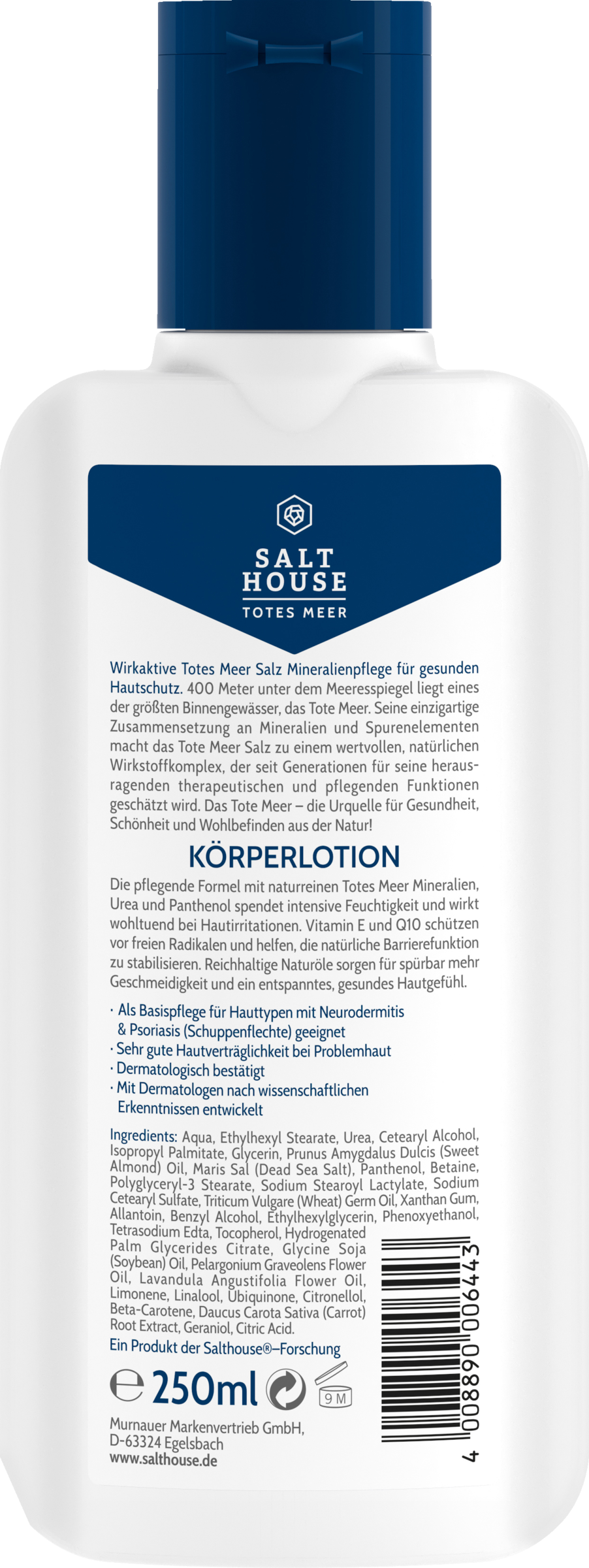 Effektiv Dødehavssaltmineralpleje til sund Hudbeskyttelse. En af de største indre vandområder, Det Døde Hav, ligger 400 meter under havets overflade. Dens unikke Sammensætning af Mineraler og sporstoffer gør Dødehavssalt til et rigt, naturligt Kompleks af aktive stoffer, der har været værdsat i generationer for dets enestående terapeutiske og nærende funktioner.