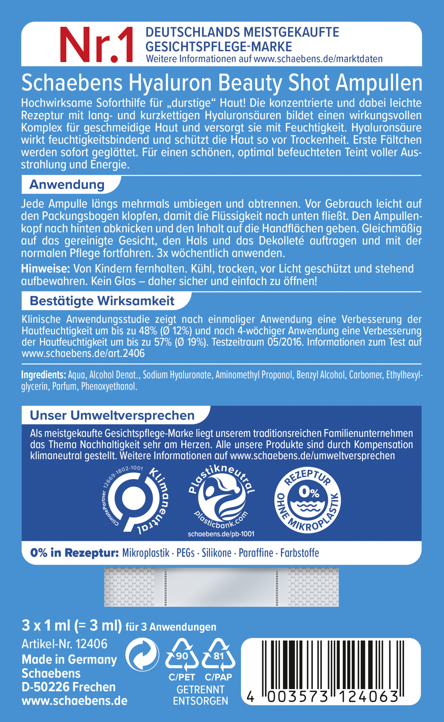 Bøj hver ampul flere gange ved den langsgående perforering og adskil eller skær den af. Inden brug skal du banke let på emballagearket for at lade væsken flyde nedad. Bøj ampullens hoved bagud og placer Beauty Shot på din håndflade. Påfør det jævnt i det rensede ansigt, på halsen og på brystet. Masser det let ind, lad det virke i et par minutter, og fortsæt derefter med den normale pleje. Vi anbefaler regelmæssig brug for at opnå optimale plejeresultater.