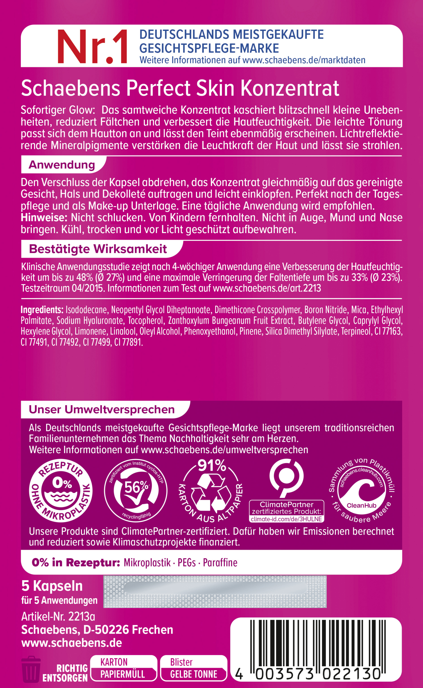 Hætten på kapslerne fjernes, koncentratet påføres jævnt i det rensede ansigt, på halsen og på brystet og bankes let ind. Perfekt efter dagpleje og som base for Makeup . daglig anvendelse anbefales. . **Hudintolerancereaktioner kan forekomme i isolerede tilfælde. Allergikere bør kontrollere indholdsstofferne omhyggeligt.