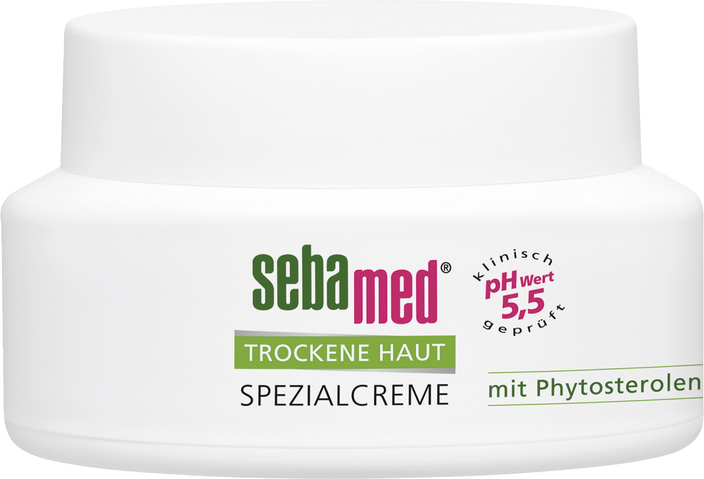 sebamed DRY SKIN-specialcreme med højkoncentrerede fytosteroler fra rapsfrø hæmmer inflammationer på en naturlig måde. Den styrker hudens eget forsvar mod miljømæssige lokalirriterende og forurenende stoffer og hjælper med at beskytte huden mod udtørring. Den særlige formel med højkoncentrerede plantefytosteroler beroliger den følsomme hud, afbalancerer spændinger og lindrer kløe. Avocadoolie (med hudrelaterede lipider, A- og E-vitamin) i kombination med ekstra E-vitamin bidrager til udglatning og beskyttelse af tør hud. PH-værdien 5,5 styrker hudens beskyttende lag og hjælper med at beskytte mod udtørring, skadelige miljøpåvirkninger og patogener.