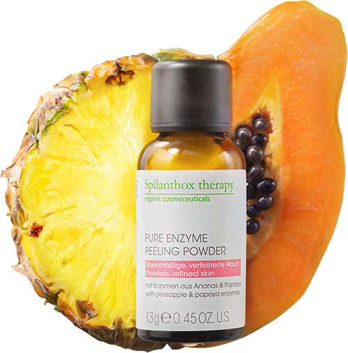 - plantenzymer fra ananas og papaya opløser døde hudceller og overskydende talg