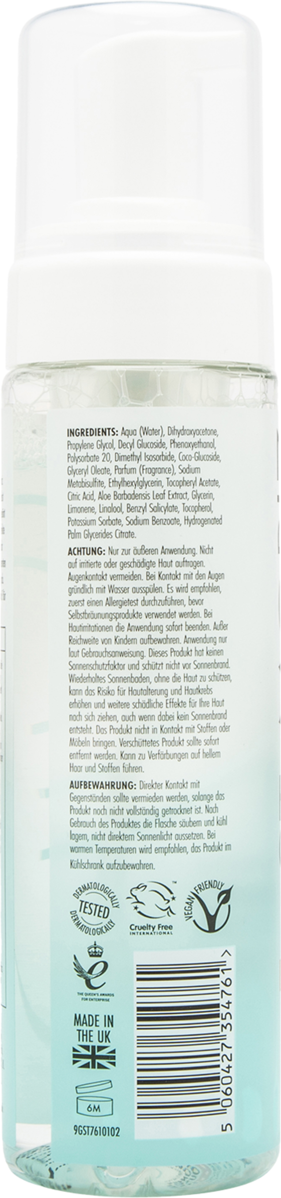 Da produktet ikke er farvet, kan du straks se, når den perfekte Braun er opnået. Den er meget nem at påføre, skal ikke vaskes af og smitter ikke af på tøjet. Samtidig sikrer aloe vera og E-vitamin perfekt velplejet hud.