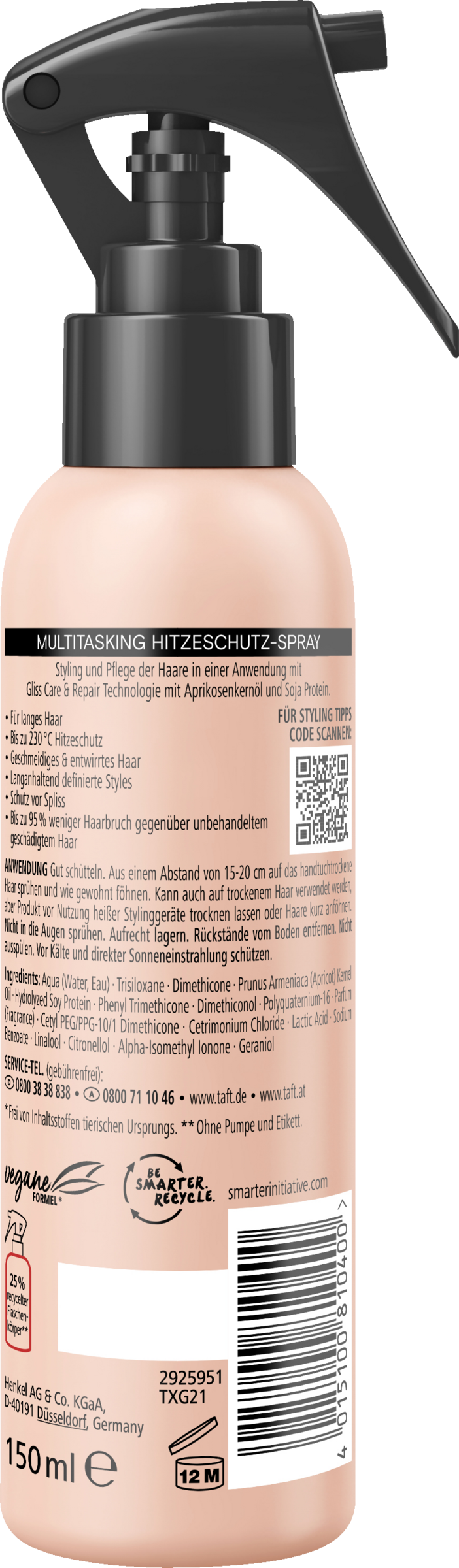 Denne multitasking varmebeskyttelsesspray kombinerer styling og pleje i én påføring takket være GLISS Care & Repair-teknologien. Den giver varmebeskyttelse op til 230°, beskyttelse mod spaltede spidser og langtidsholdbare, definerede frisurer. Denne varmespray sikrer glat og udfiltret hår med op til 95% mindre brud sammenlignet med ubehandlet skadet hår - perfekt til langt hår. Formlen er vegansk, og flaskens krop er 25 % genanvendt.