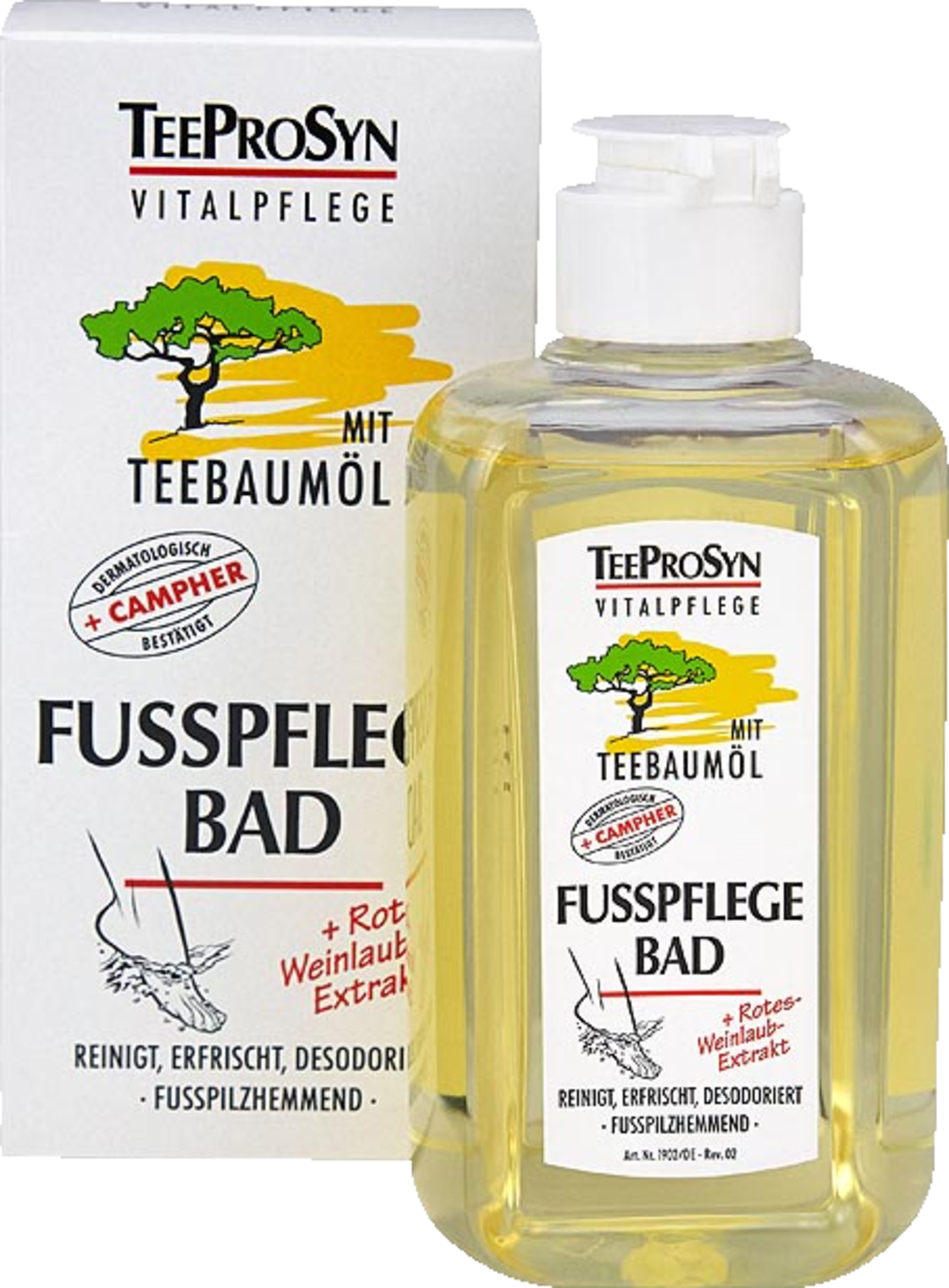 TeeProSyn fodplejebadet opfrisker og revitaliserer trætte, brændende og stressede fødder. Det forhindrer fodlugt, renser og deodoriserer. Afslapper smertefulde fødder, blødgør hård hud og hård hud, fremmer blodcirkulationen og hæmmer udviklingen af Fodsvamp.