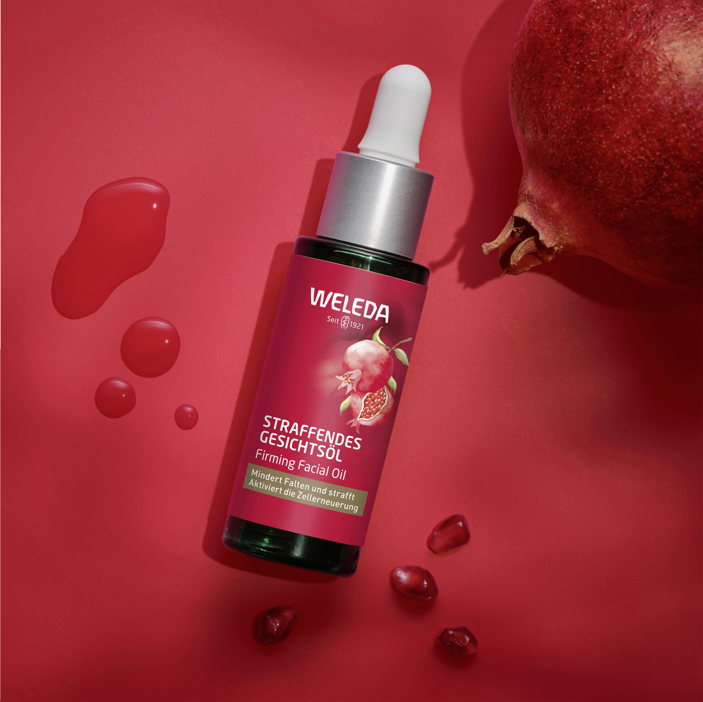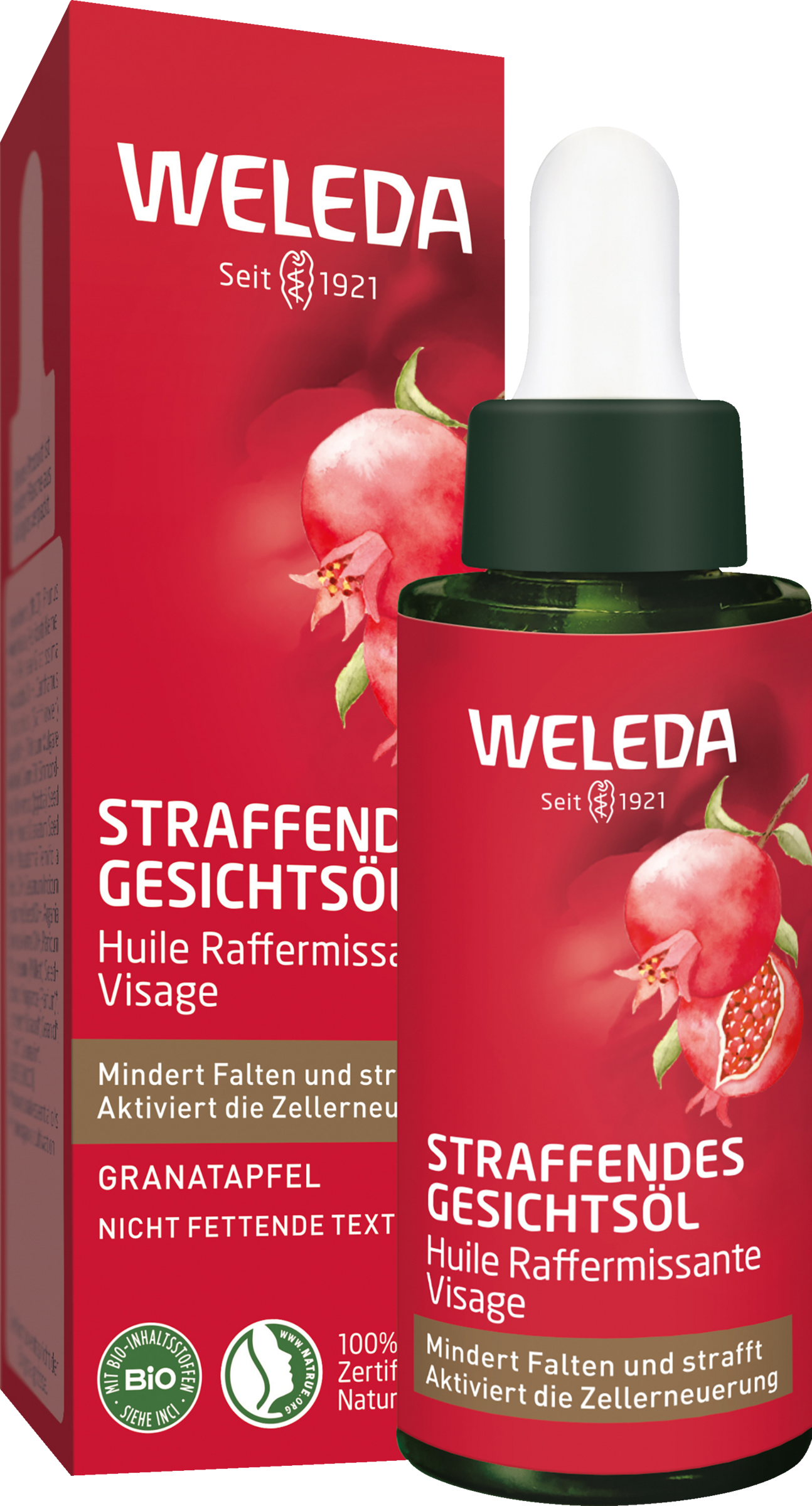 Let Formel med otte rige Bio planteolier, såsom granatæble, avocado og Arganolie. Intensivt nærer huden, forbedrer dens elasticitet og understøtter cellefornyelsen. Til en skinnende hud fuld af energi. Hudkompatibiliteten er klinisk og dermatologisk bekræftet.