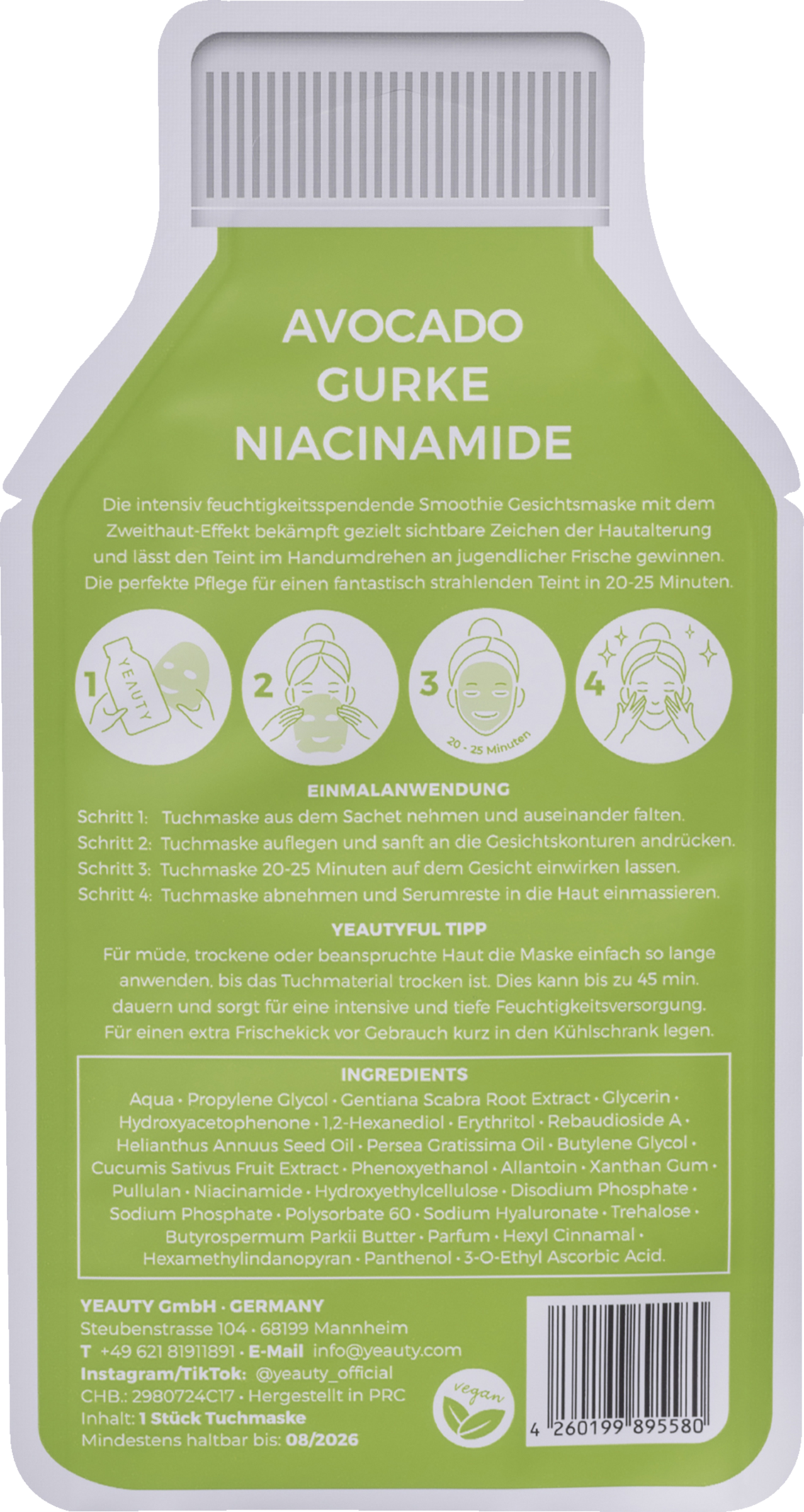 - Avocado - fugtgivende Agurk - frisk Niacinamid - beroligende