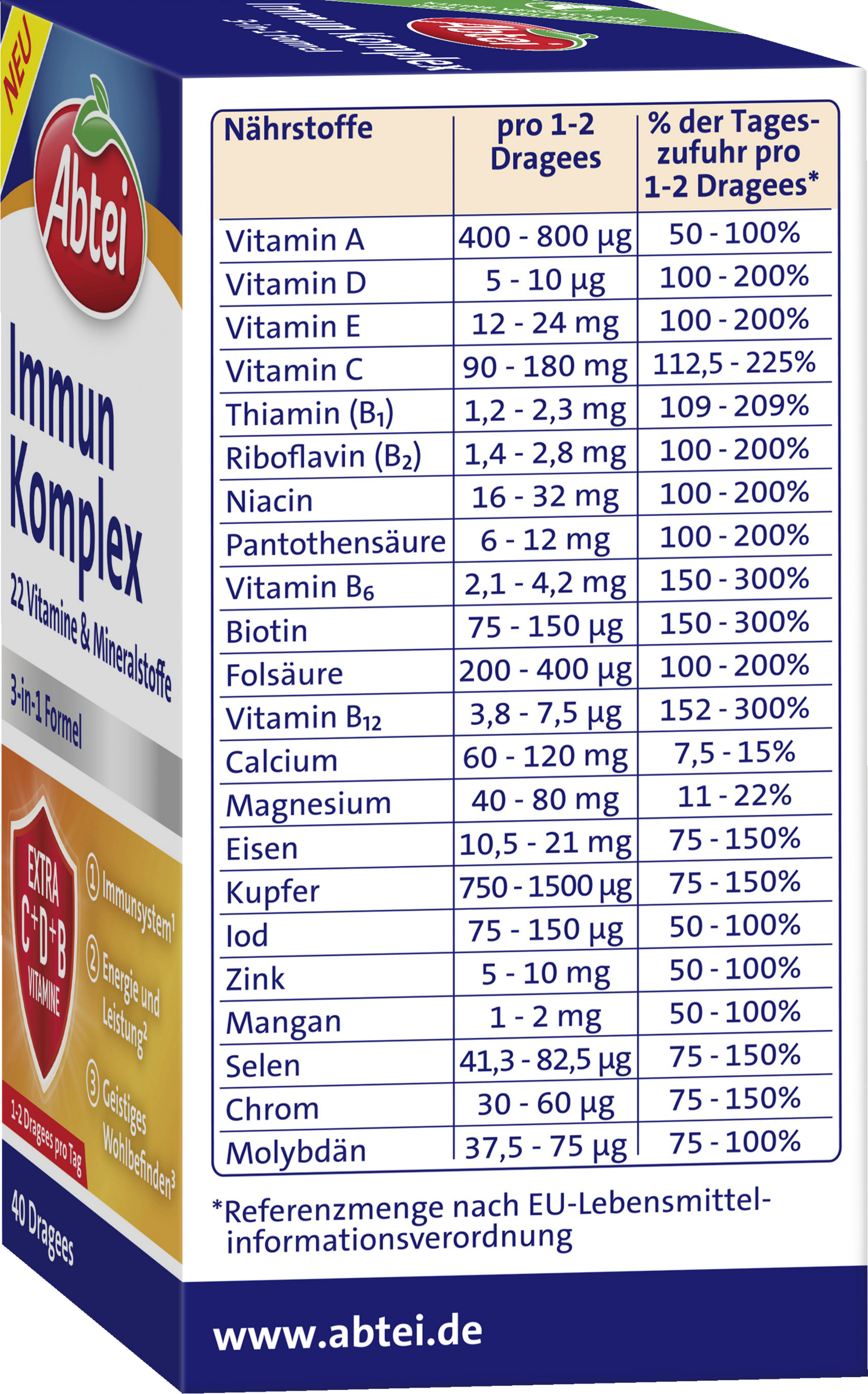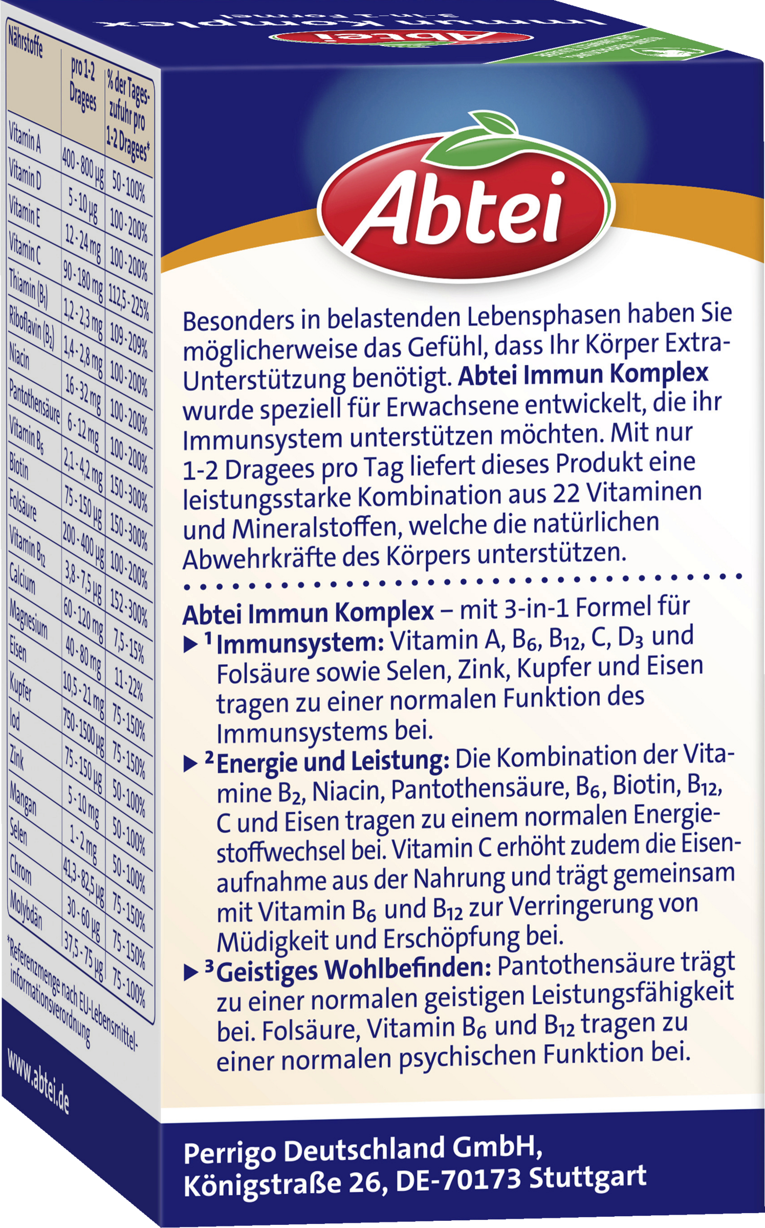 - Immunprodukt af høj kvalitet med 3-i-1-formel - unikt kombineret med 22 vitaminer og mineraler i overtrukne tabletter, der er nemme at sluge.