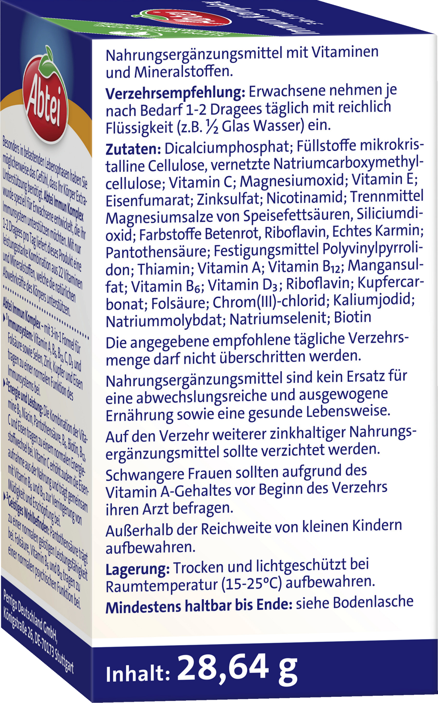 Den angivne anbefalede daglige dosis må ikke overskrides. Kosttilskud er ikke en erstatning for en varieret og afbalanceret kost såvel som en sund livsstil. Indtagelse af andre zinkholdige kosttilskud bør undgås. Gravide kvinder bør konsultere deres læge, inden de indtager produkter med A-vitamin.