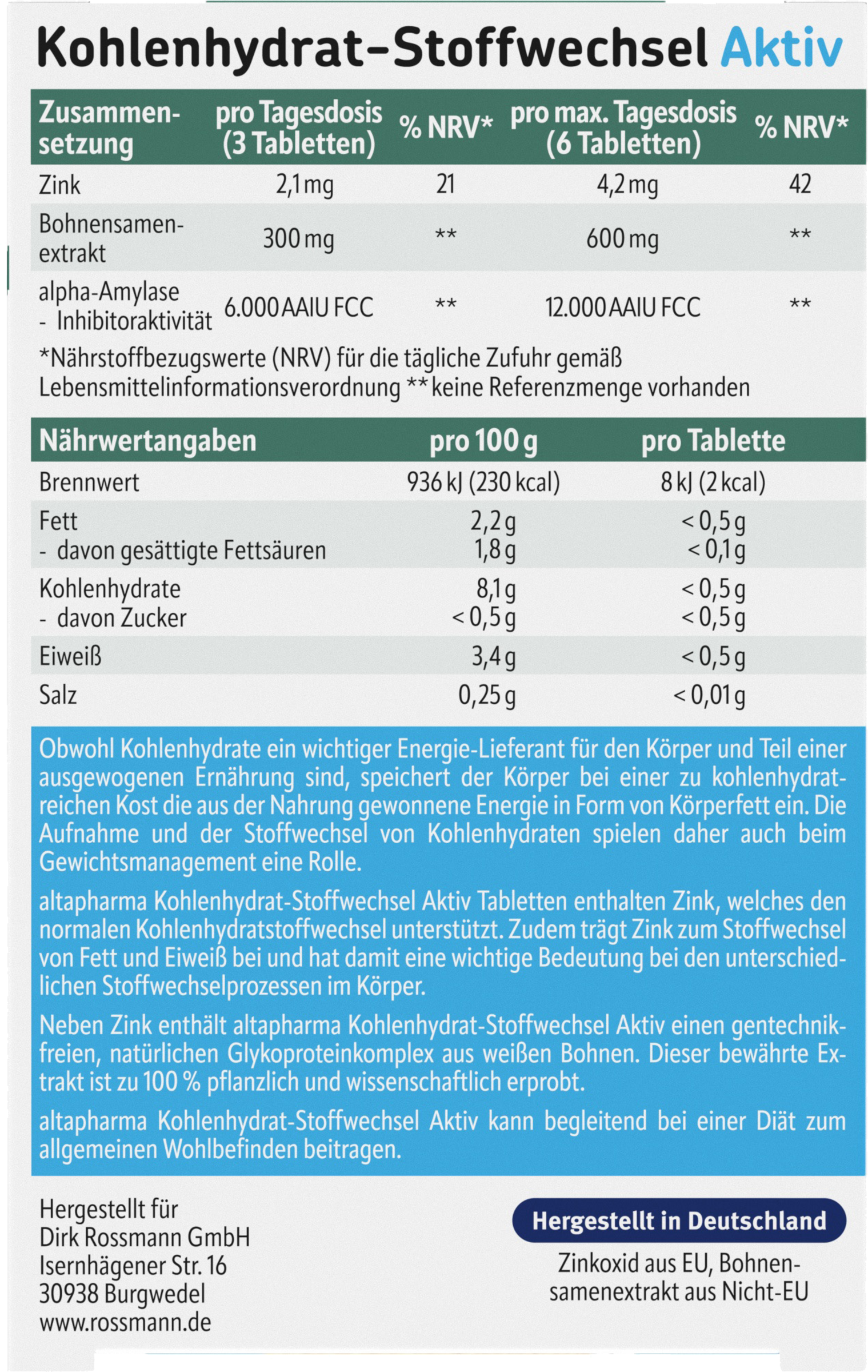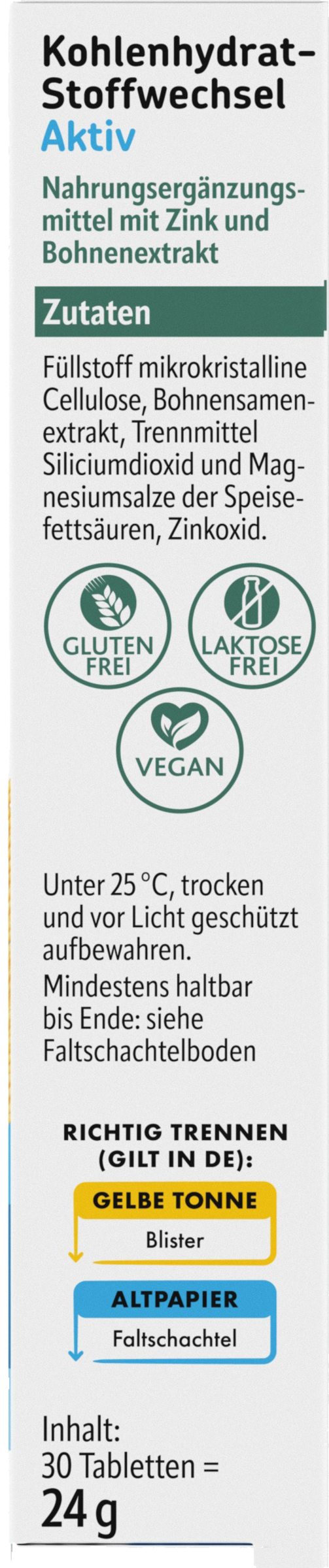 Ud over zink indeholder altapharma Carbohydrate Stofskifte Active et ikke-GMO, naturligt glycoproteinkompleks fra hvide bønner. Dette dokumenterede ekstrakt er 100% plantebaseret og videnskabeligt bevist.