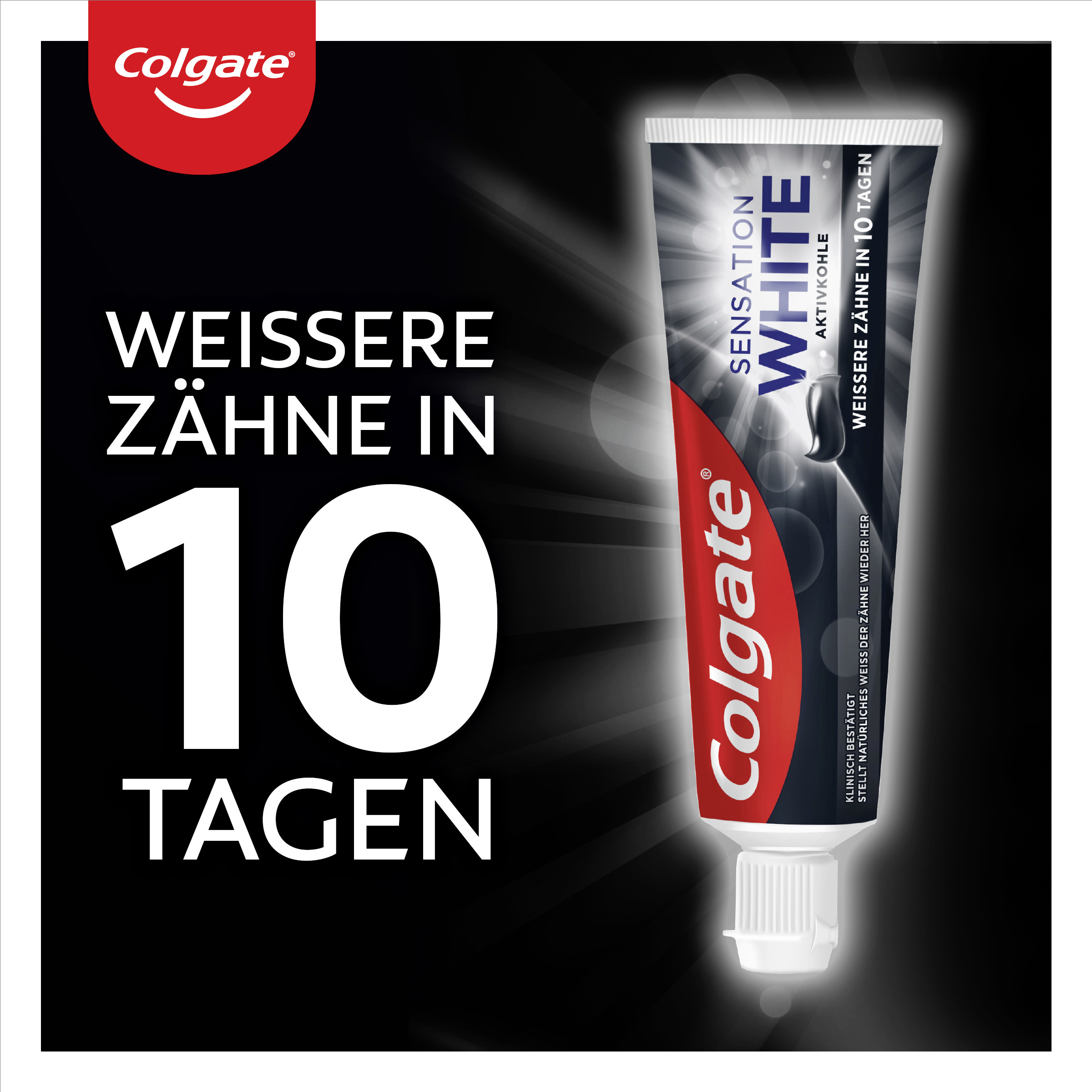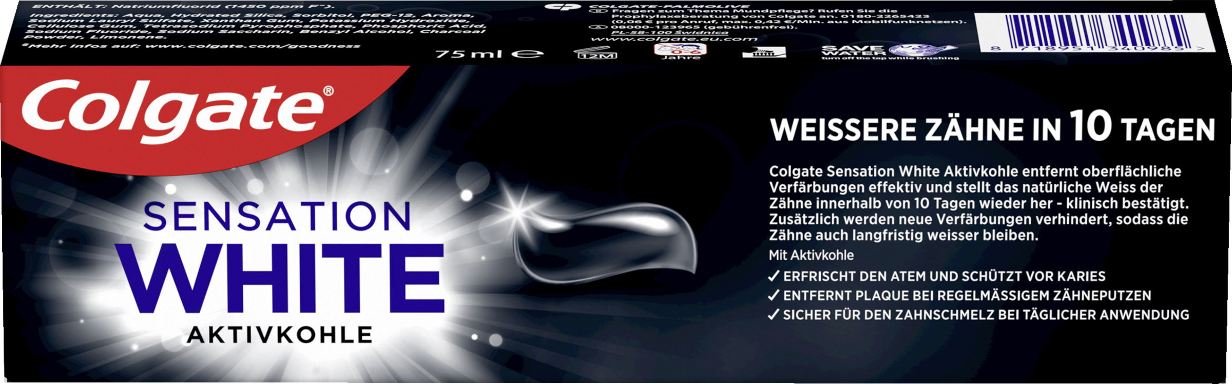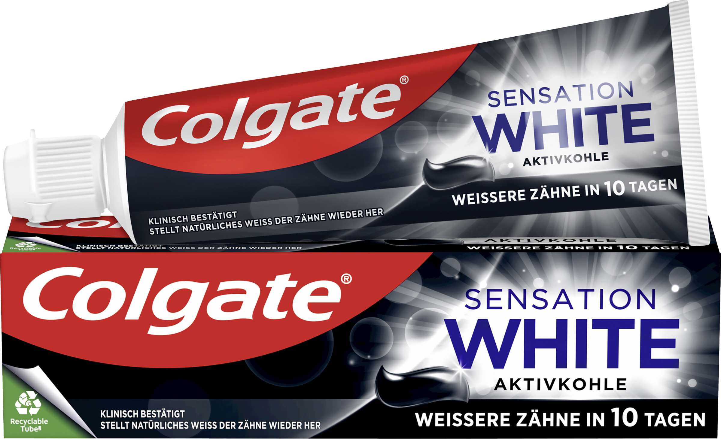Klinisk bekræftet: Colgate Sensation White-tandpasta med SmartFoam-system og aktivt kul fjerner effektivt overfladisk misfarvning og genopretter tændernes naturlige hvidhed inden for 10 dage. Den hjælper også med at forhindre ny misfarvning, så dine tænder forbliver hvide længere.
