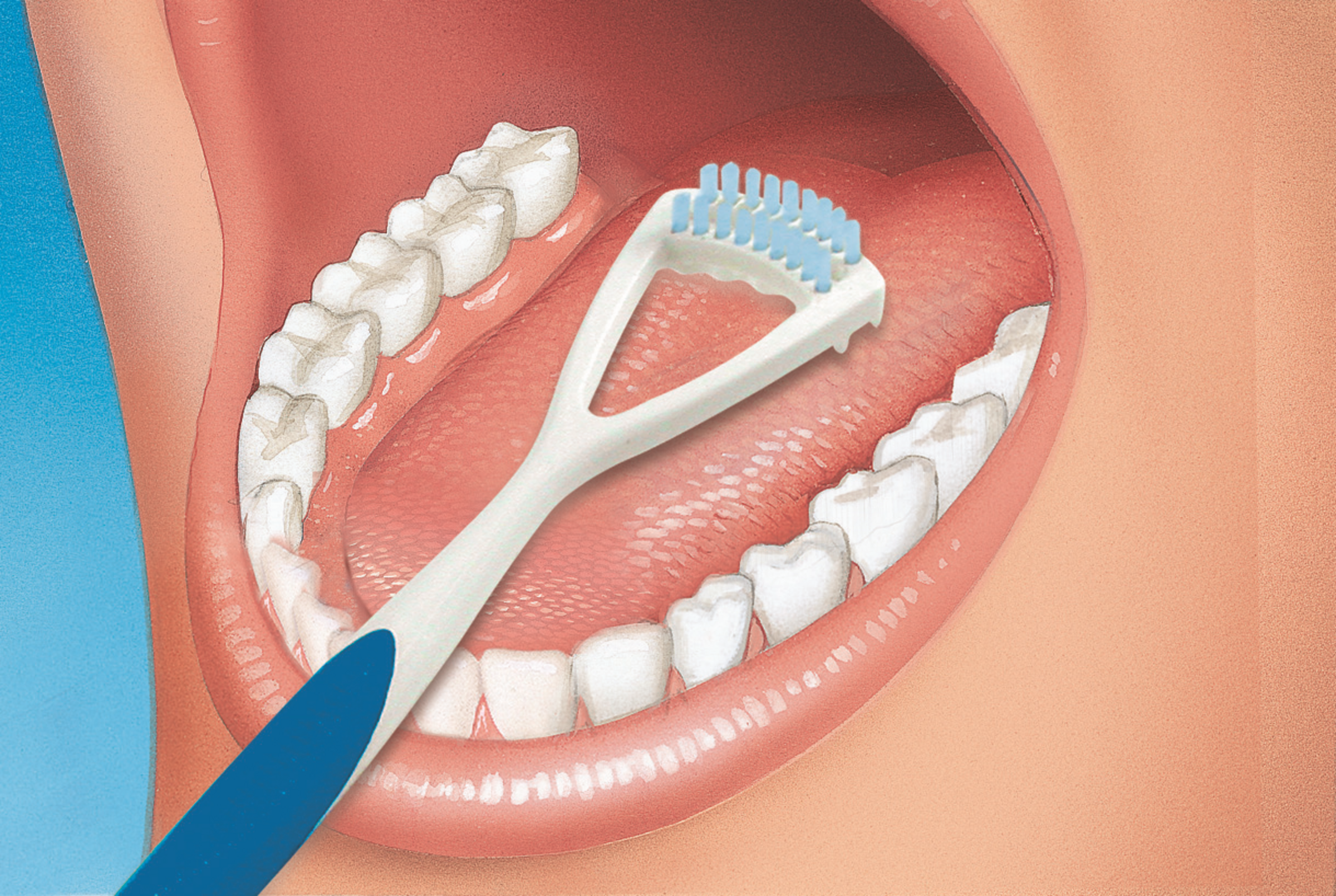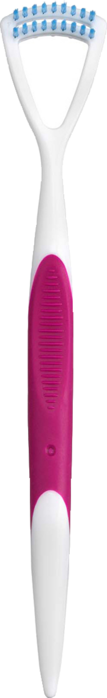 Fjerner bakterielle belægninger på tungen og renser tungen effektivt. Med ekstra fladt hoved for at minimere irritation i svælget. Kombination af skrabekant og børstehårsfelt til effektiv rengøring og fjernelse af den afskrabede belægning på tungen. Ergonomisk formet håndtag.