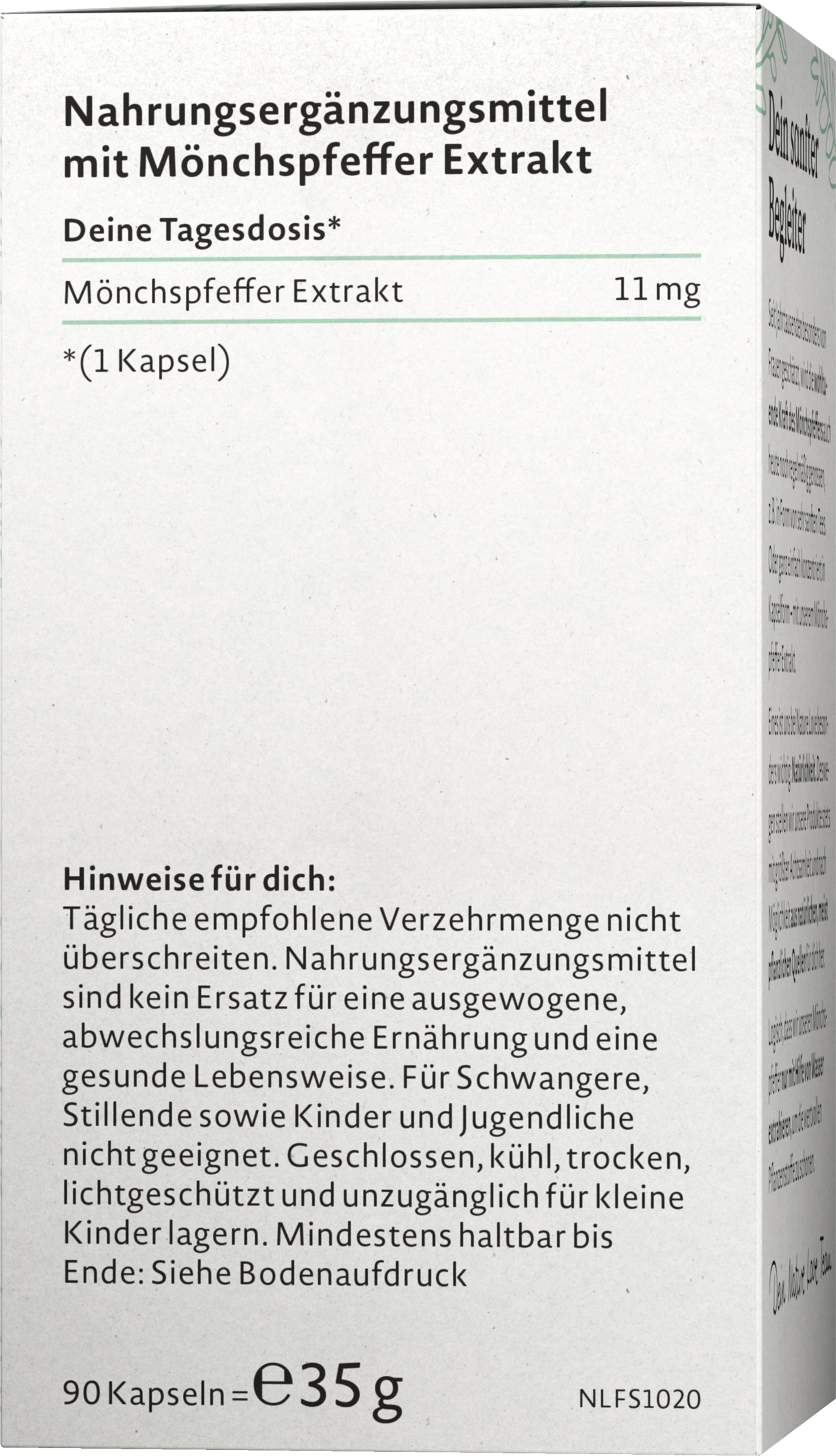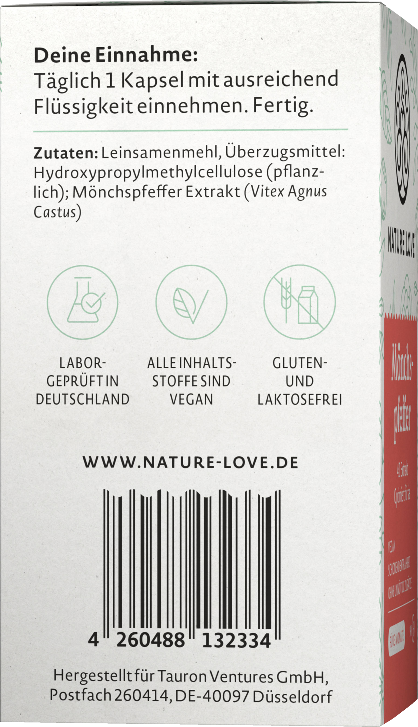 Den beroligende kraft i munkepeber har været værdsat af især kvinder i tusinder af år og nydes stadig regelmæssigt i dag, for eksempel i form af meget blide teer. Eller blot koncentreret i kapselform - med ekstrakt af munkepeber. Love Nature udvinder munkepeber ved kun at bruge vand for at SCHÖNNE for mich de værdifulde plantestoffer. En ting er særlig vigtig for Love Nature: Naturlighed. Derfor fremstiller de deres produkter til dig med den største omhu og så vidt muligt fra naturlige, rent plantebaserede kilder.