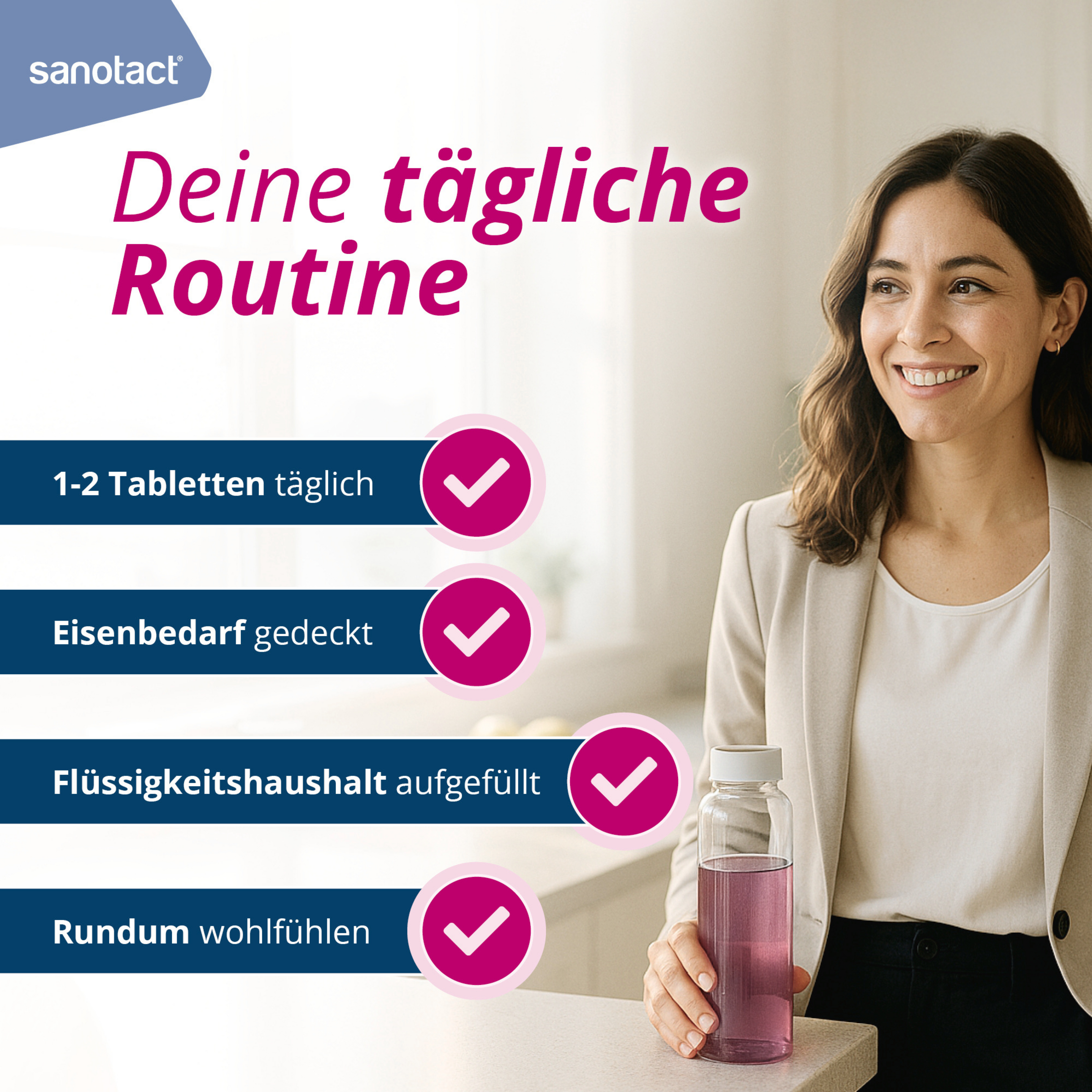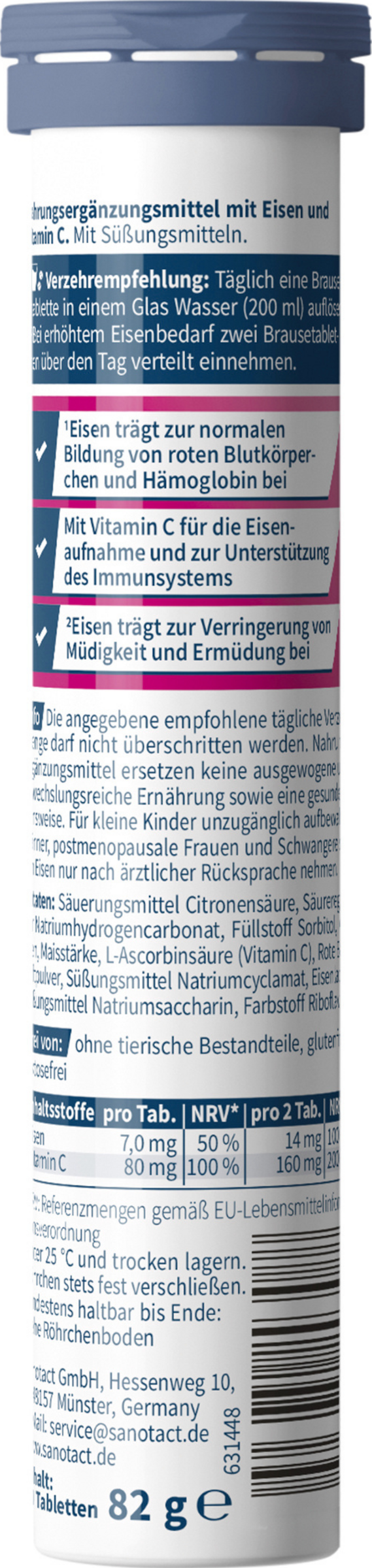 Den angivne anbefalede daglige dosis må ikke overskrides. Kosttilskud erstatter ikke en afbalanceret og varieret kost og en sund livsstil. Opbevares utilgængeligt for børn. Mænd, postmenopausale kvinder og gravide bør kun tage jern efter aftale med en læge.