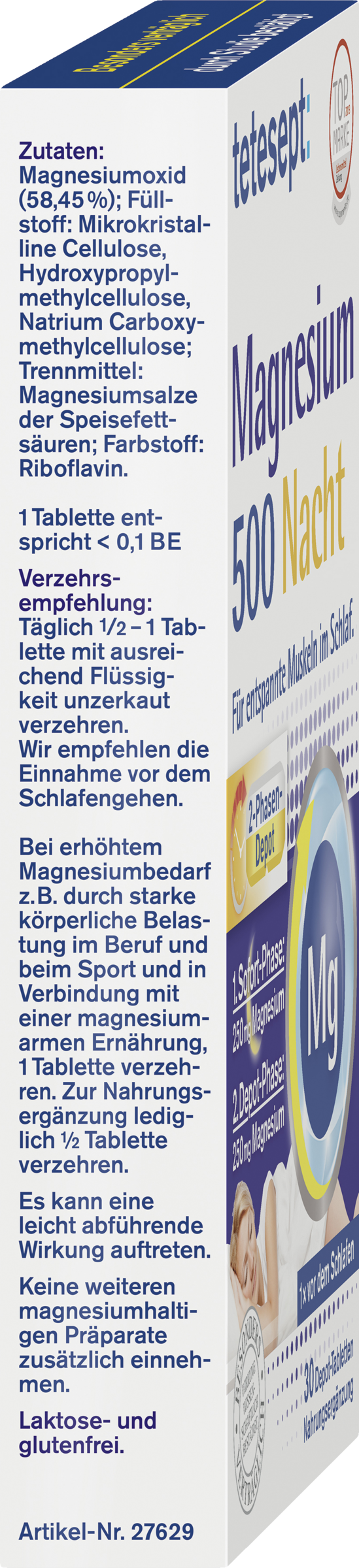 tetesept magnesium 500 Nat giver kroppen højdoseret magnesium. Dette bidrager til: